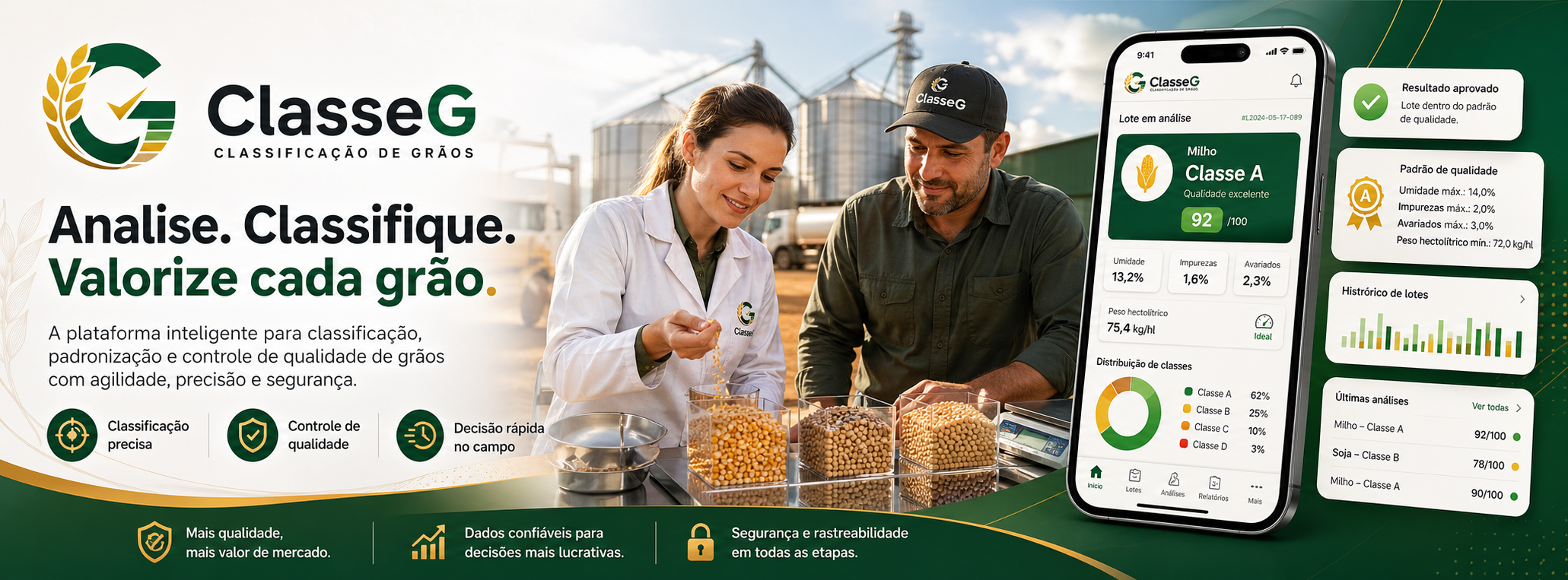 Aplicativo mobile para registro, organização e acompanhamento de classificações de grãos em ambientes operacionais.