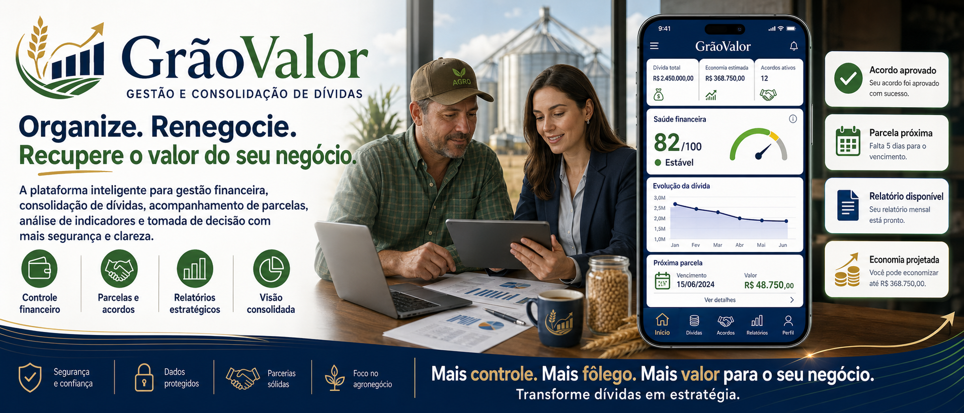 Dar ao produtor e ao cliente uma visão mais clara, organizada e confiável sobre dívidas, compromissos e evolução financeira.